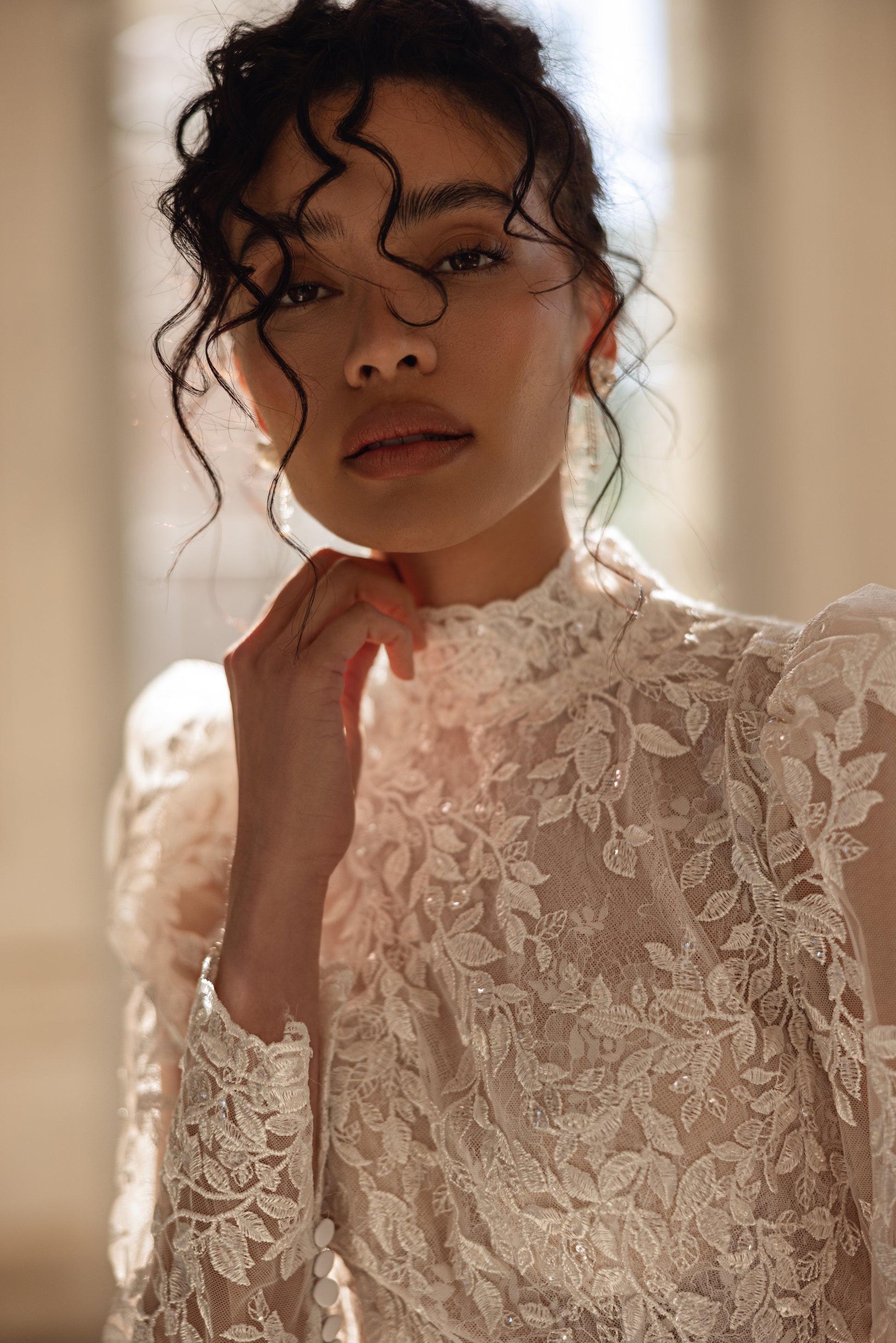 In this cappuccino-toned A-line gown, modesty and allure go hand in hand. The high neckline and long sleeves evoke a regal restraint, while the open back plunges gracefully to the waist, revealing just enough to surprise. It’s a dress that speaks with quiet confidence — poised, elegant, and self-assured.